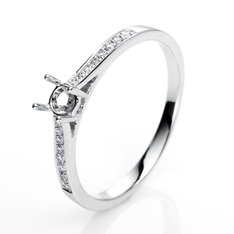 ring 18 kt WG, 16 diamonds 0,09 ct, G-si, mounting for 1x diamond 0,25 ct, width:54