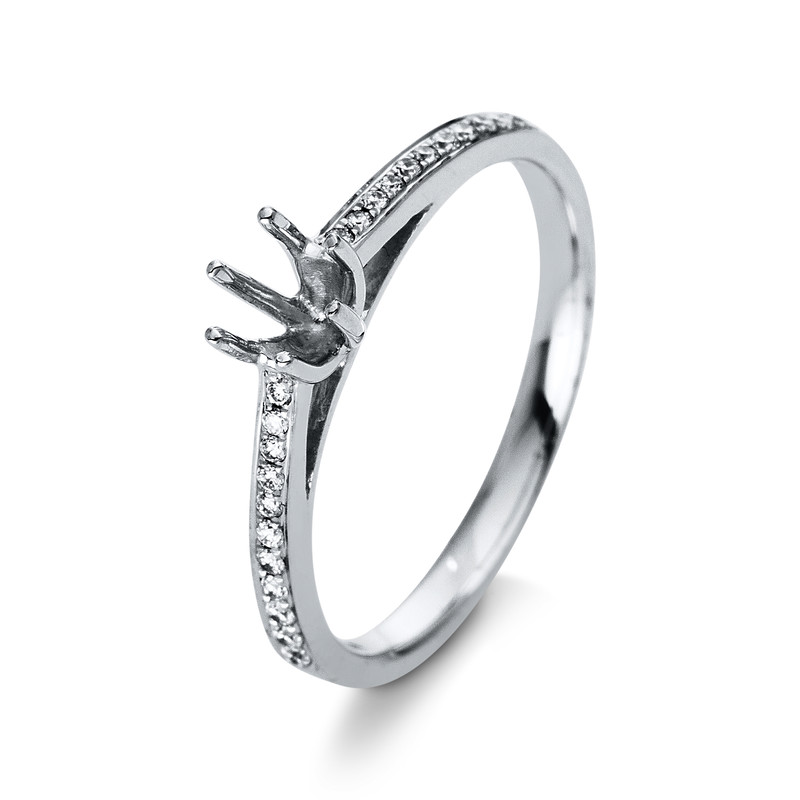 ring 18 kt WG, 22 diamonds 0,12 ct, G-si, mounting for 1x diamond 0,25 ct, width:53