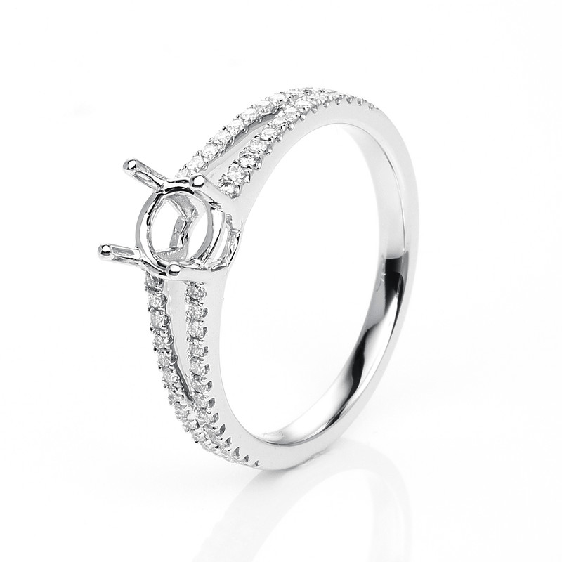ring 18 kt WG, 52 diamonds 0,25 ct, G-si, mounting for 1x diamond 0,50 ct, width:53