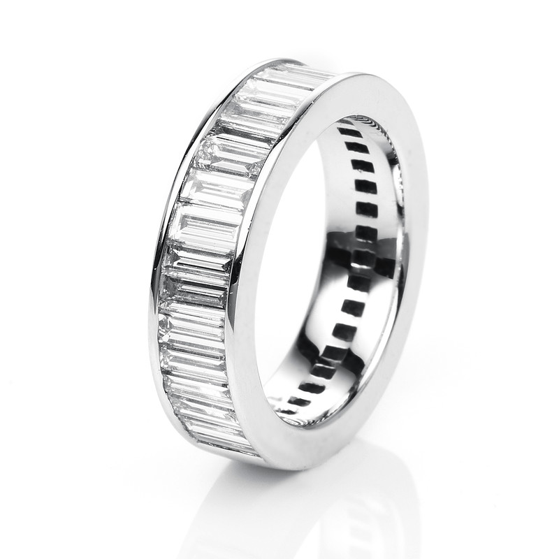 ring 18 kt WG, 19 baguette 1,80 ct, G-vsi, w:5,2 mm, width:53