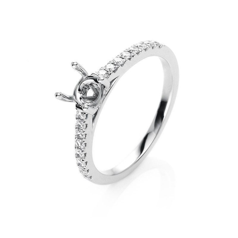 ring 18 kt WG, 20 diamonds 0,22 ct, G-si, mounting for 1x 0,50 ct, width:54