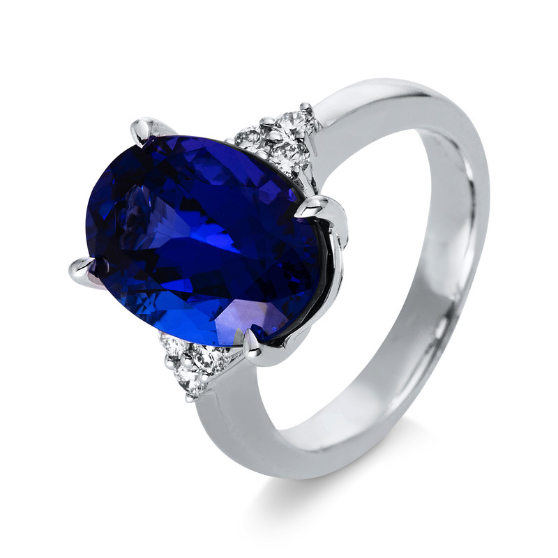 ring 18 kt WG, 6 diamonds 0,24 ct, G-si, 1 tanzanite 8,23 ct blue, width:54