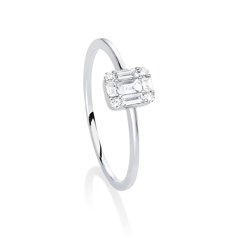 ring 18 kt WG, 4 diamonds 0,04 ct, G-si, 5 baguette 0,16 ct, G-si, width:54