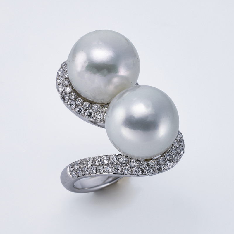 ring 18 kt WG, 92 diamonds 1,11 ct, H-si, 2 SS white 12 mm, w:29,3 mm, width:54