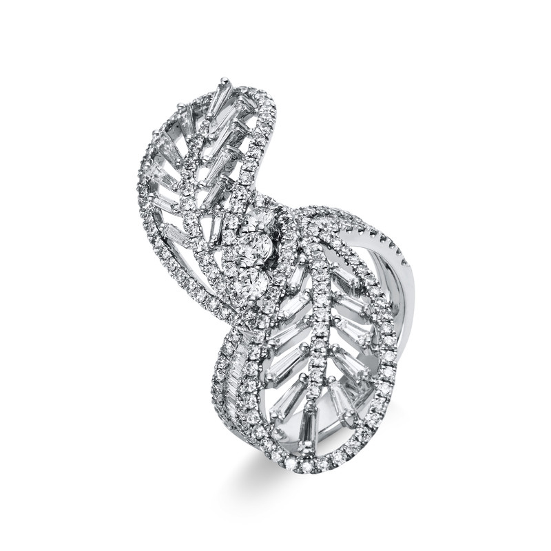 ring 18 kt WG, 44 baguette 1,03 ct, G-vsi/si, 153 diamonds 1,51 ct, G-vsi/si, h:39,9 mm, w:23,1 mm, width:54