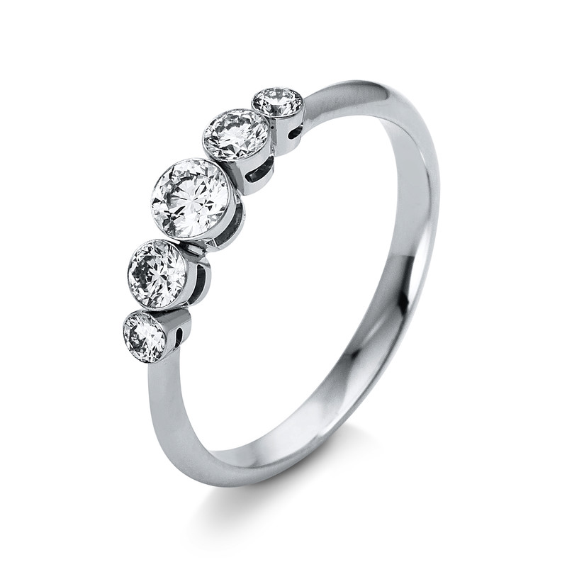 ring 18 kt WG, 5 diamonds 0,51 ct, G-si, w:3,8 mm, width:53