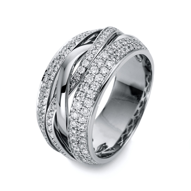 ring 18 kt WG, 182 diamonds 1,07 ct, H-si, w:10,7 mm, width:55
