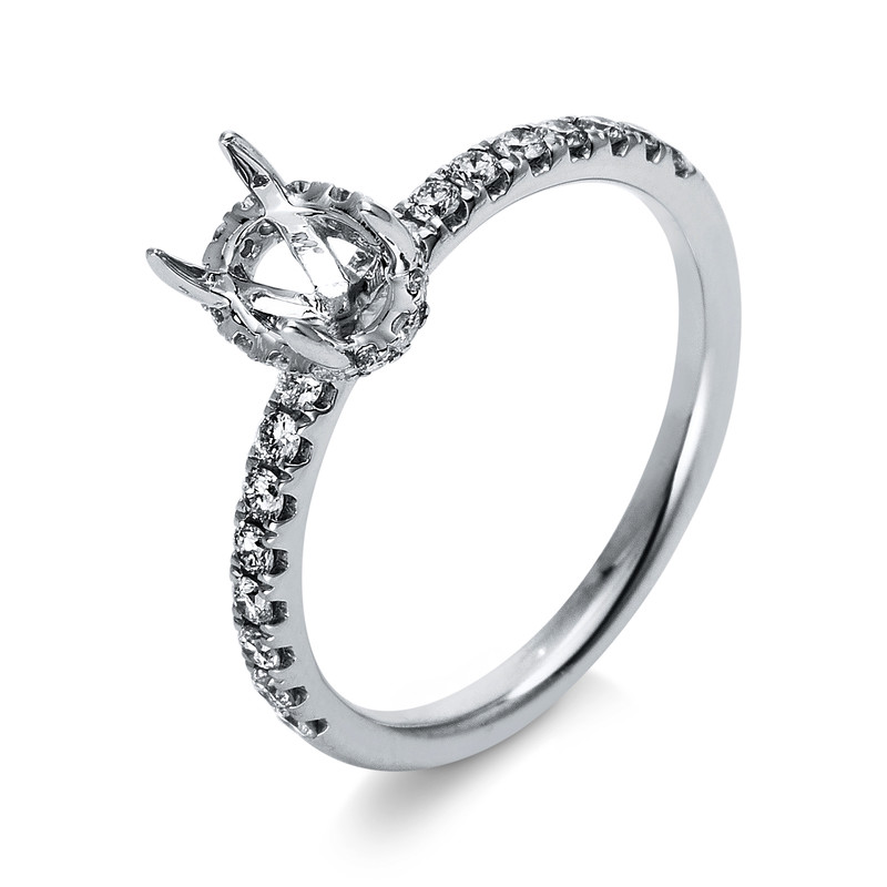 ring 18 kt WG, 30 diamonds 0,34 ct, G-si, mounting for 1x oval 7X5 mm, width:53