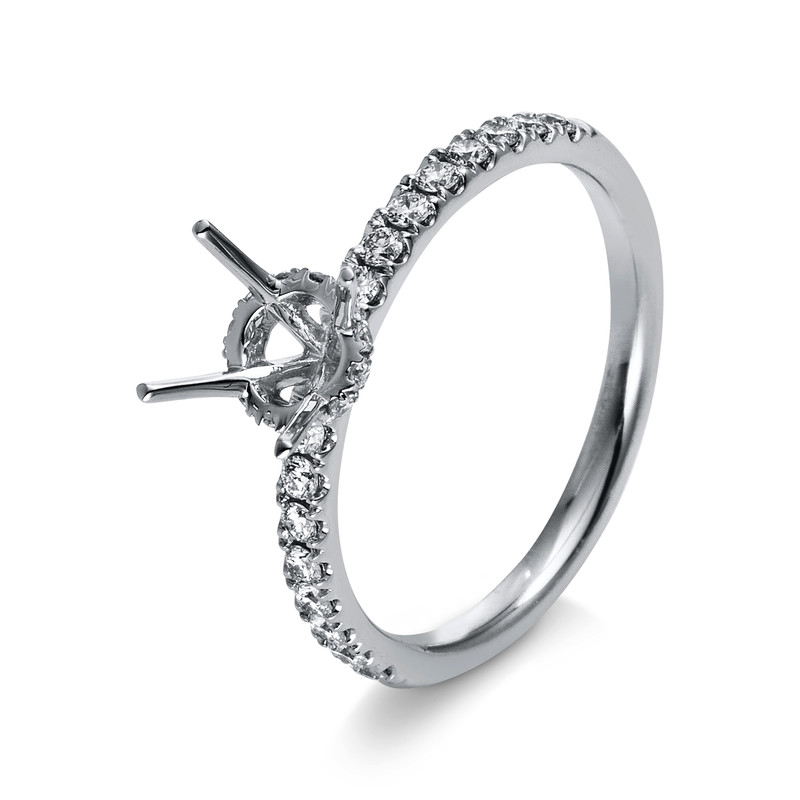ring 18 kt WG, 28 diamonds 0,29 ct, G-si, mounting for 1x diamond 0,50 ct, width:53