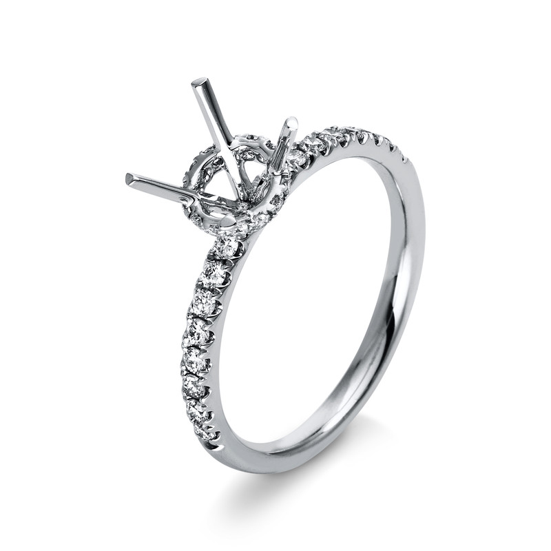 ring 18 kt WG, 30 diamonds 0,26 ct, G-si, mounting for 1x diamond 0,75 ct, width:53