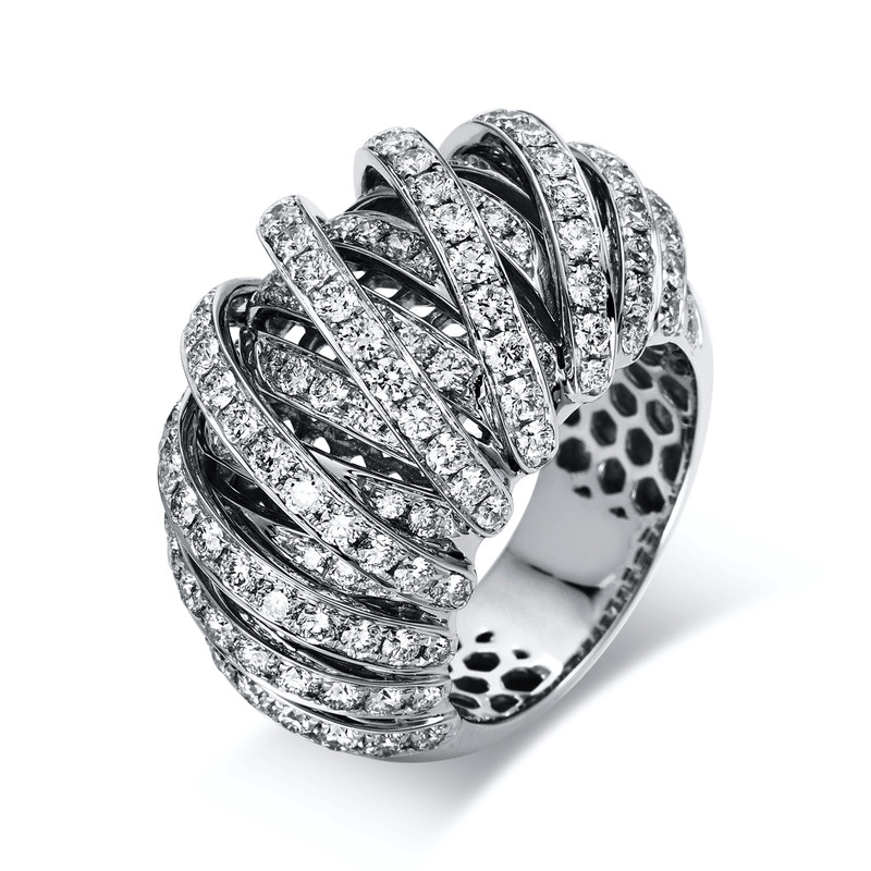 ring 18 kt WG, 174 diamonds 3,05 ct, G-si, w:16,9 mm, width:53