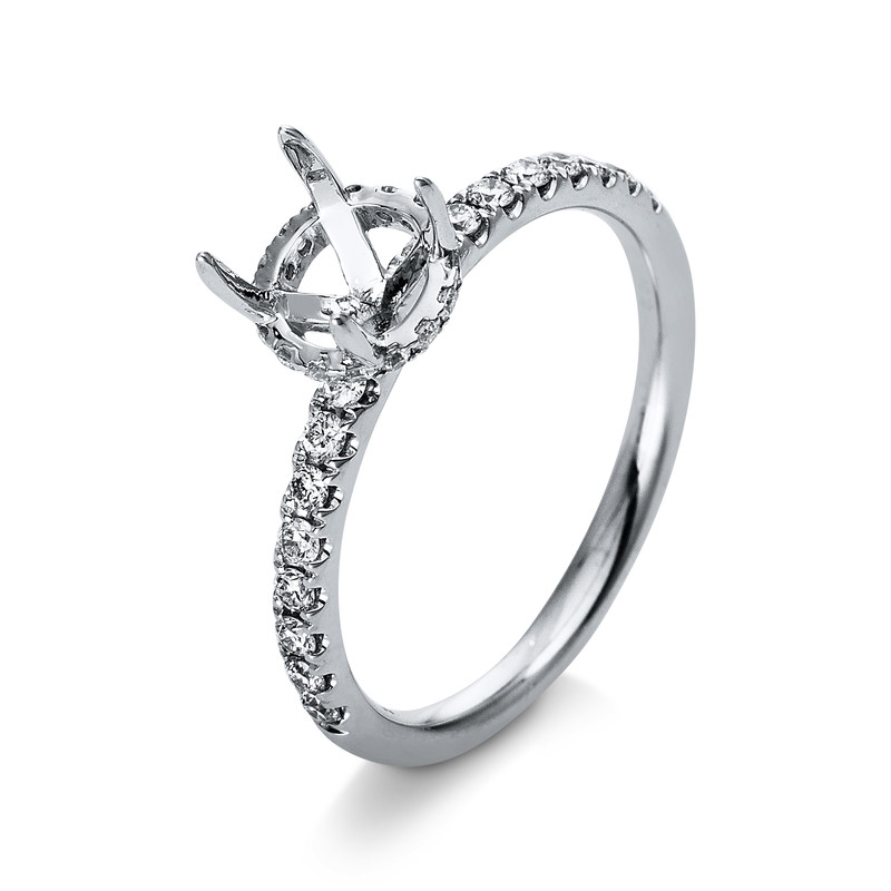 ring 18 kt WG, 32 diamonds 0,30 ct, G-si, mounting for 1x diamond 6.5 mm, width:53