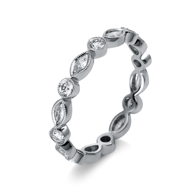 ring 18 kt WG, 8 marquise 0,43 ct, G-vsi/si, 8 diamonds 0,37 ct, G-vsi/si, width:53