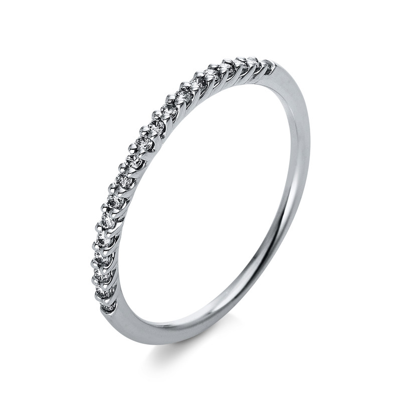ring 18 kt WG, 19 diamonds 0,14 ct, G-si, w:1,4 mm, width:54