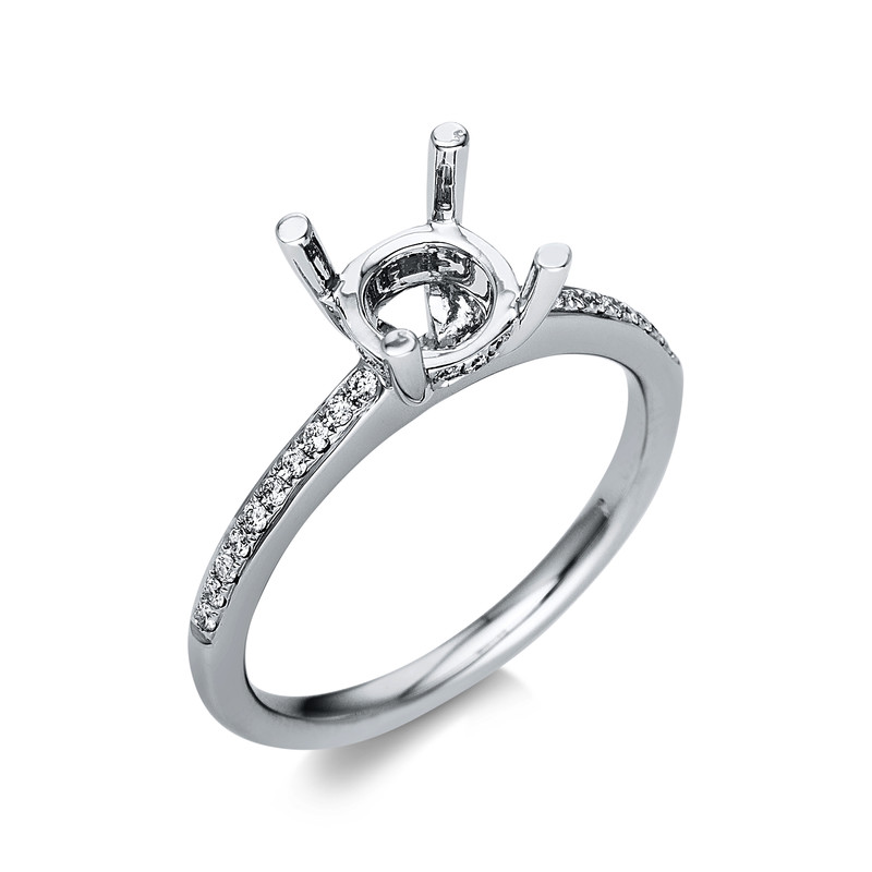 ring 18 kt WG, 32 diamonds 0,15 ct, G-si, mounting for 1x diamond 1,25 ct, width:53,5