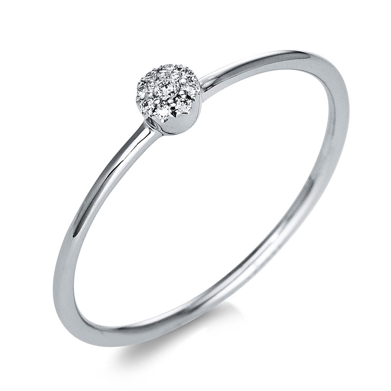 ring 18 kt WG, 1 diamond 0,01 ct, G-si, 8 diamonds 0,02 ct, G-si, width:54