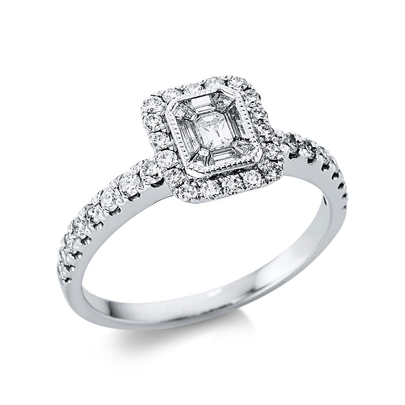 ring 18 kt WG, 9 baguette 0,22 ct, G-si, 34 diamonds 0,45 ct, G-si, width:54