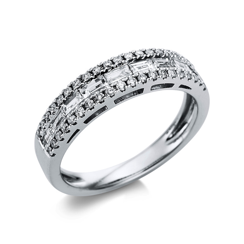 ring 18 kt WG, 9 baguette 0,52 ct, G-si, 40 diamonds 0,24 ct, G-si, width:54