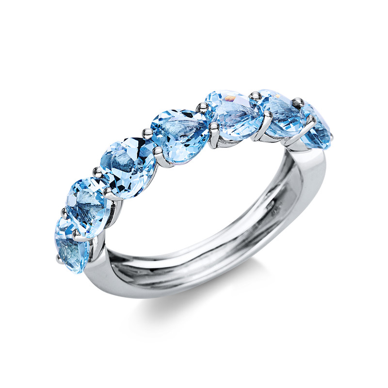 ring 18 kt WG, 7 topaz 3,70 ct blue, w:5,1 mm, width:54