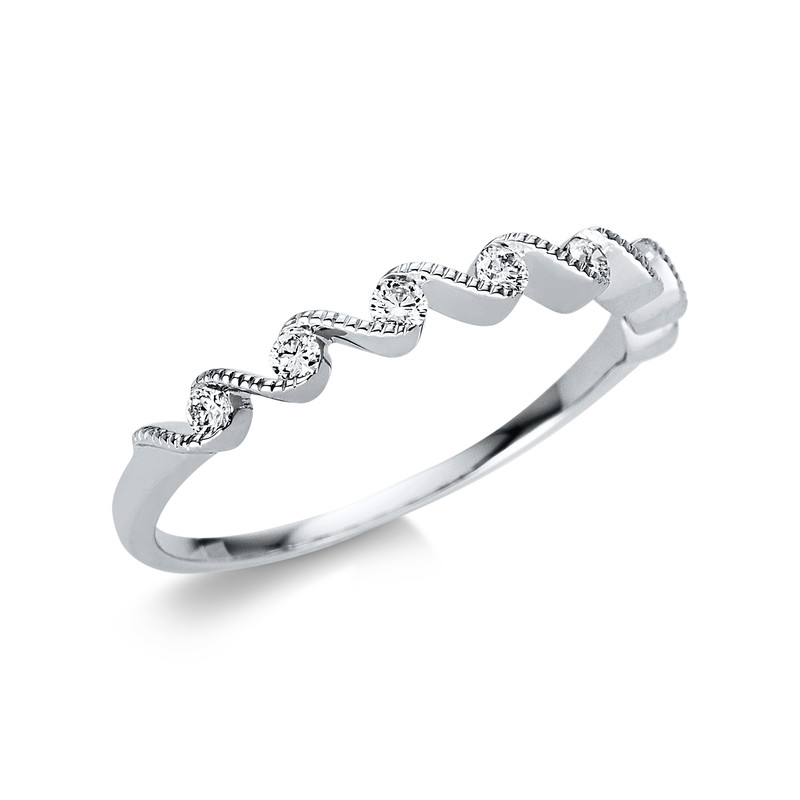 ring 18 kt WG, 7 diamonds 0,14 ct, G-si, width:54