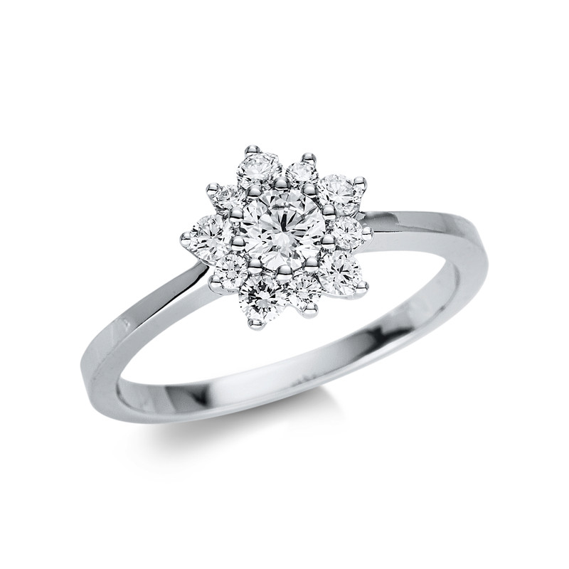 ring 18 kt WG, 1 diamond 0,24 ct, G-si, 10 diamonds 0,27 ct, G-si, width:54