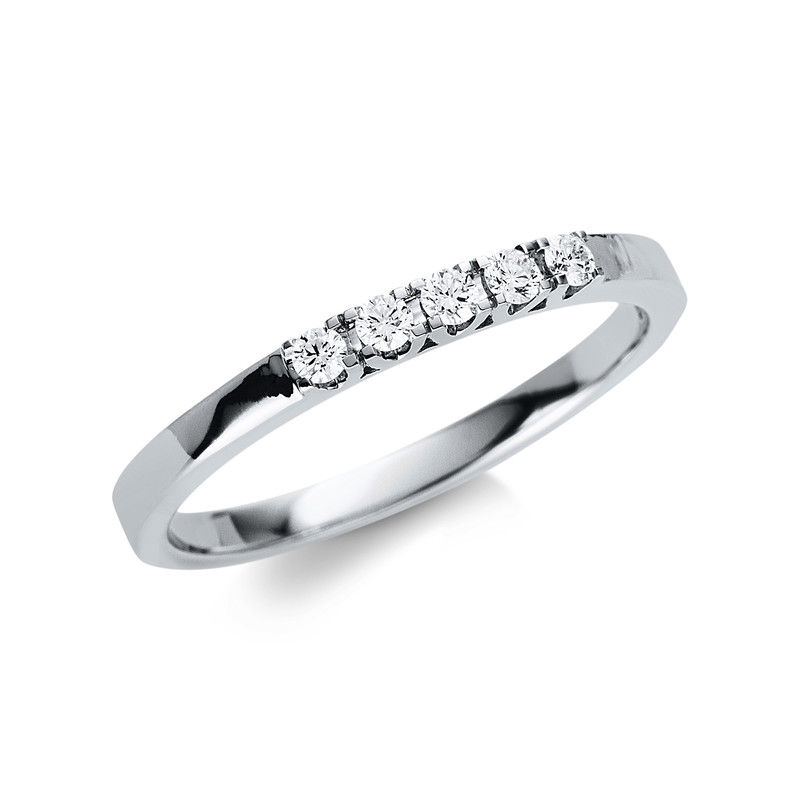 ring 18 kt WG, 5 diamonds 0,12 ct, G-si, width:54
