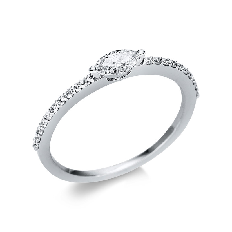 ring 18 kt WG, 1 marquise 0,18 ct, G-si, 20 diamonds 0,13 ct, G-si, width:54