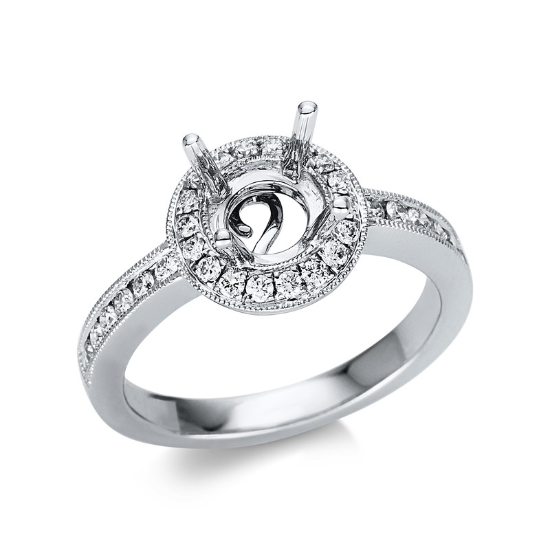 ring 18 kt WG, 30 diamonds 0,35 ct, G-si, mounting for 1x diamond 0,85 ct, width:53