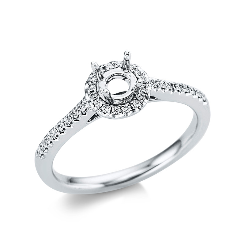 ring 18 kt WG, 32 diamonds 0,13 ct, G-si, mounting for 1x diamond 0,25 ct 4.1 mm, width:53