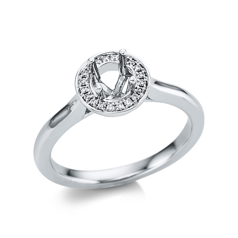 ring 18 kt WG, 20 diamonds 0,07 ct, G-si, mounting for 1x diamond 0,33 ct 4.4 mm, width:53