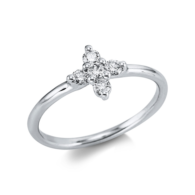 ring 18 kt WG, 5 diamonds 0,25 ct, G-si, h:8,2 mm, width:54