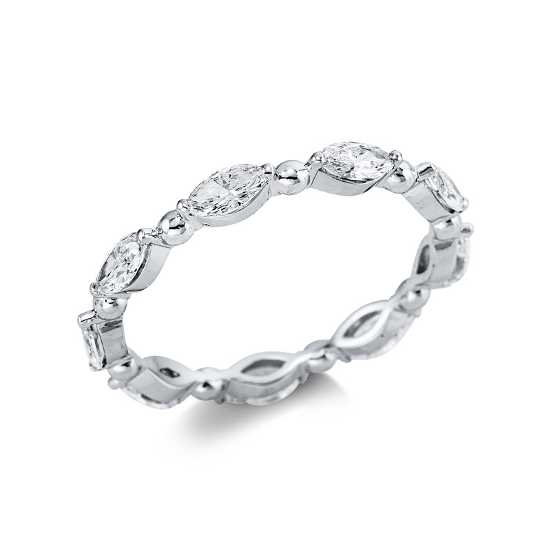 ring 18 kt WG, 9 marquise 1,11 ct, F-si, w:2,5 mm, width:54