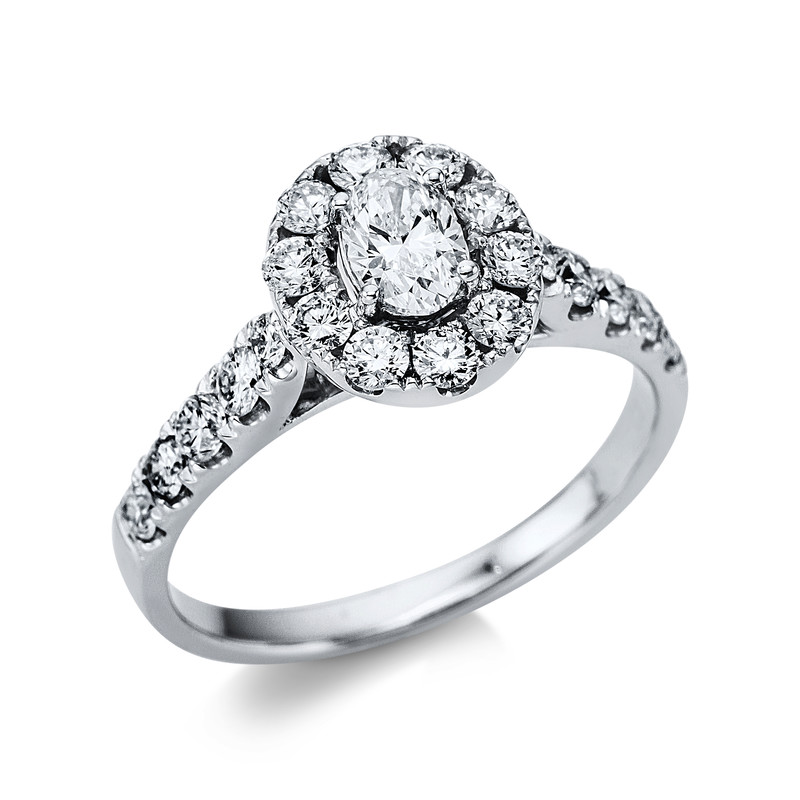 ring 18 kt WG, 24 diamonds 0,90 ct, G-si, 1 oval 0,39 ct, G-si, width:54