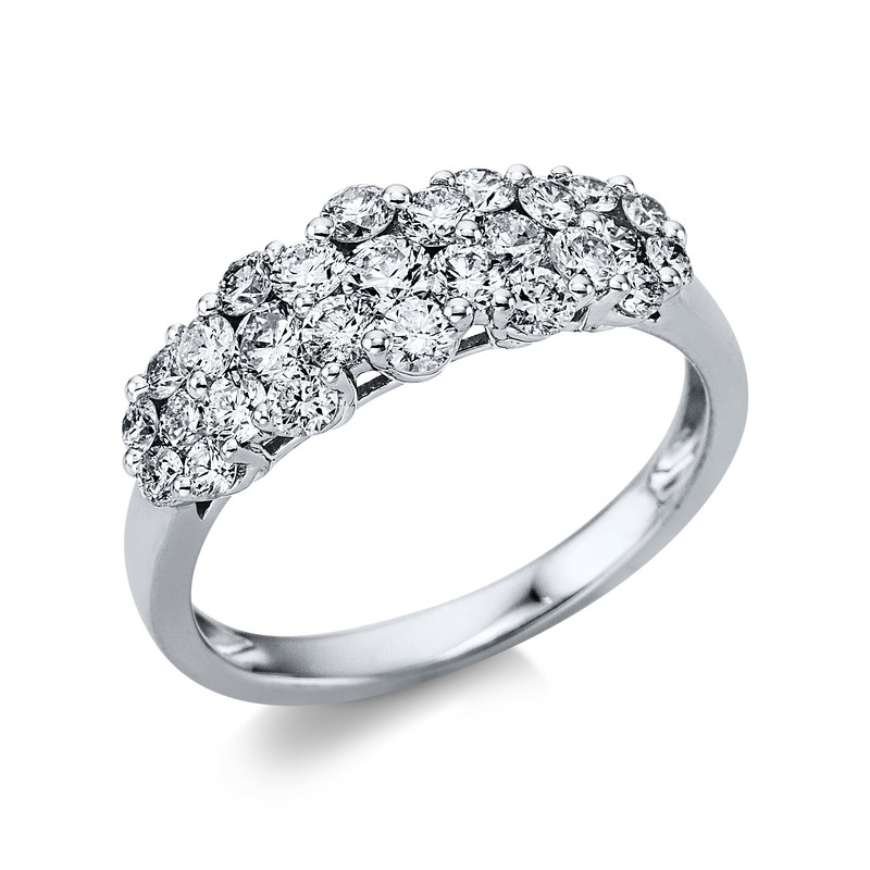 ring 18 kt WG, 24 diamonds 0,99 ct, G-si, 3 diamonds 0,26 ct, G-si, width:54