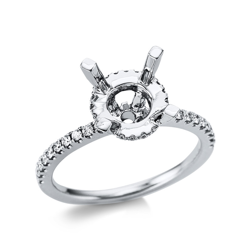 ring 18 kt WG, 60 diamonds 0,42 ct, G-si, mounting for 1x diamond 3,00 ct, width:53