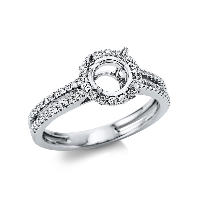 ring 18 kt WG, 64 diamonds 0,32 ct, G-si, mounting for 1x diamond 1,00 ct, width:53