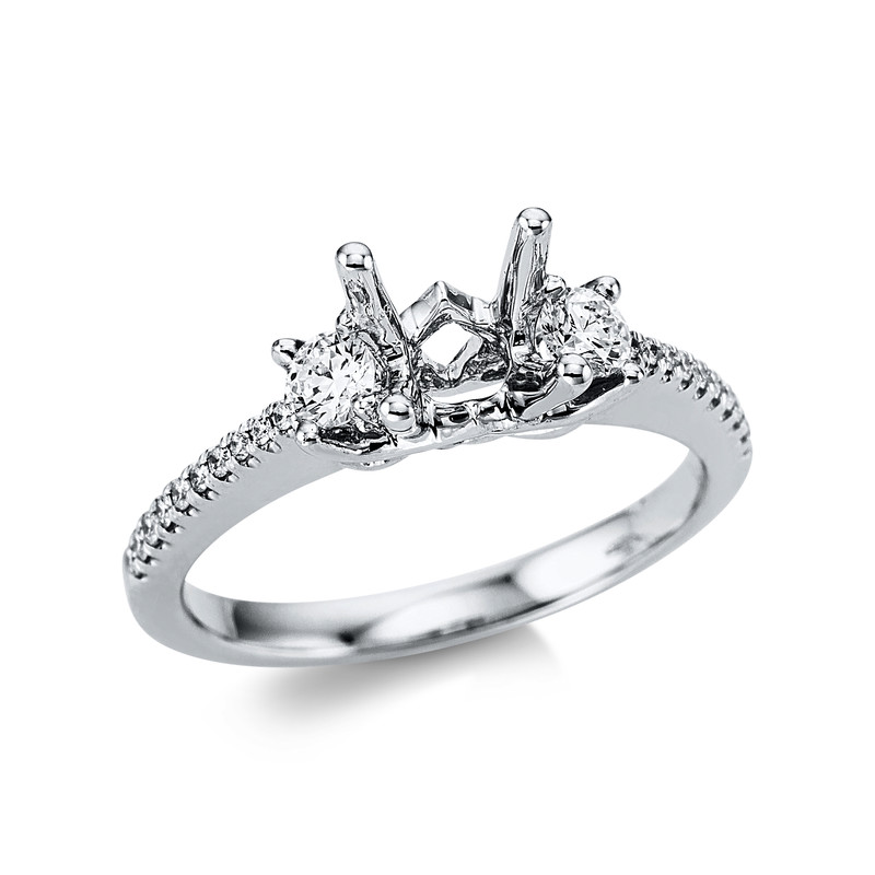 ring 18 kt WG, 22 diamonds 0,34 ct, G-si, mounting for 1x diamond 0,75 ct, width:53