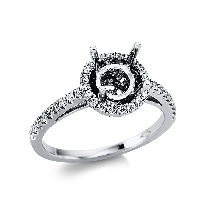 ring 18 kt WG, 68 diamonds 0,41 ct, G-si, mounting for 1x diamond 1,00 ct, width:53