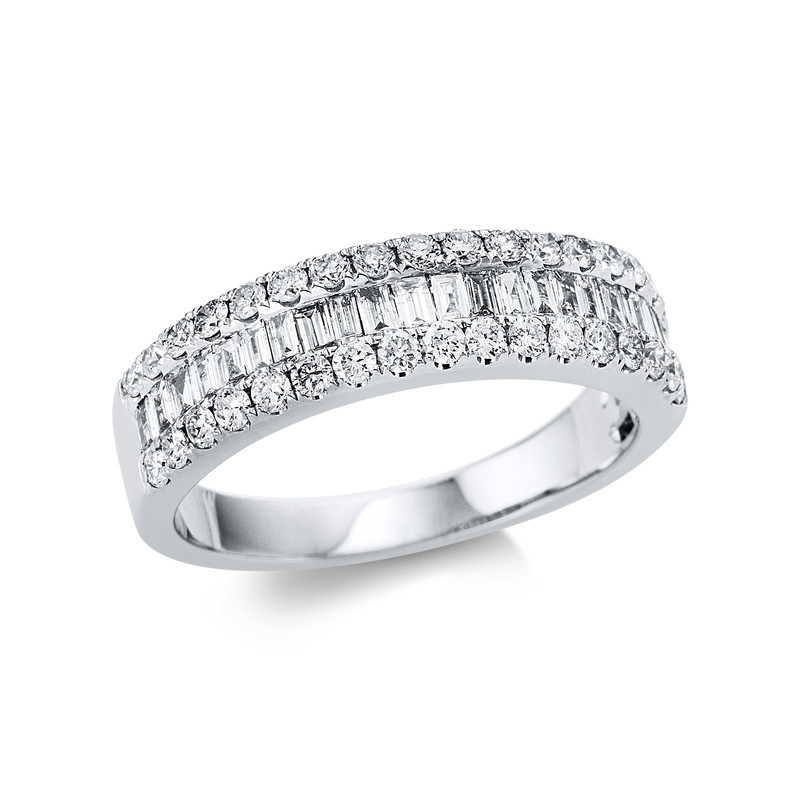 ring 18 kt WG, 22 baguette 0,45 ct, G-si, 34 diamonds 0,50 ct, G-si, w:5,4 mm, width:54
