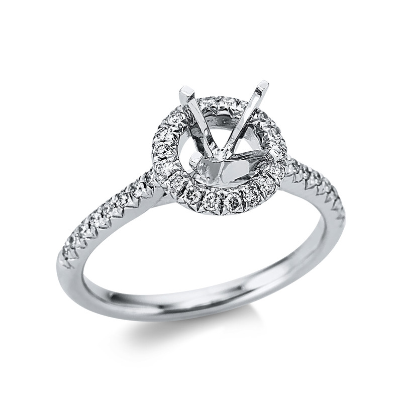 ring 18 kt WG, 34 diamonds 0,25 ct, G-si, mounting for 1x diamond 1,00 ct, width:53