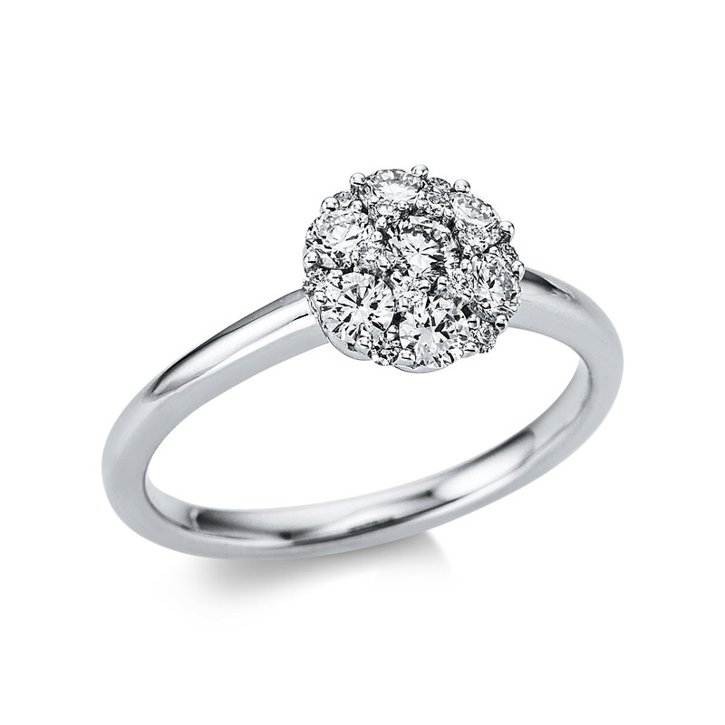 ring 18 kt WG, 19 diamonds 0,61 ct, G-si, width:53