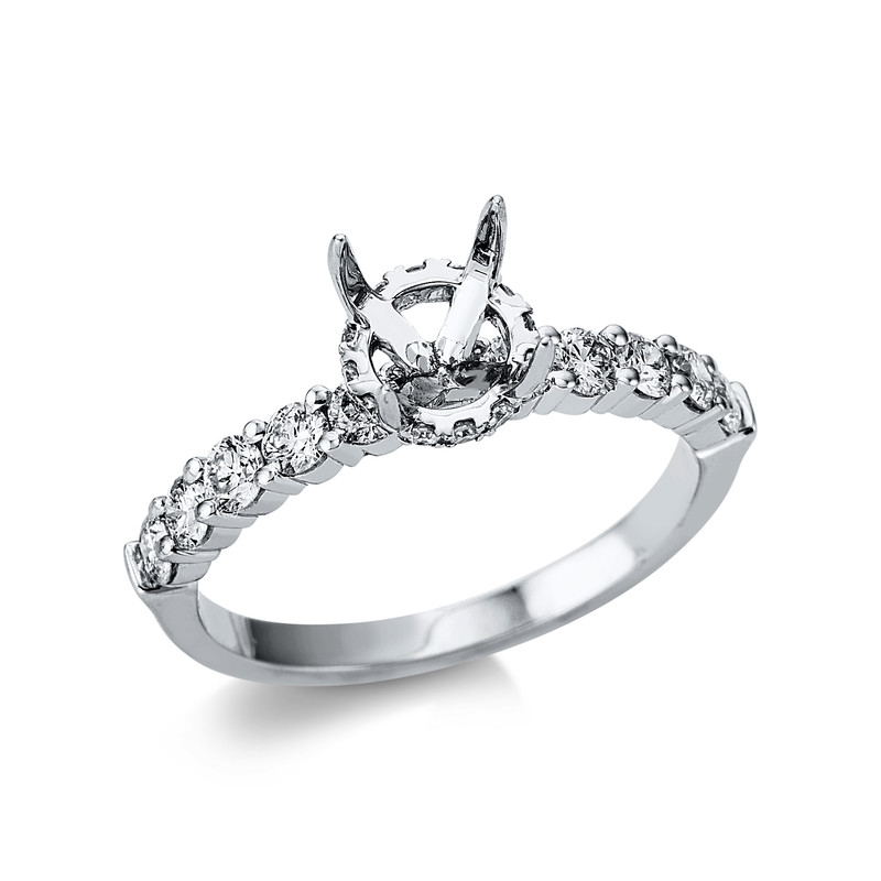 ring 18 kt WG, 22 diamonds 0,63 ct, G-si, mounting for 1x diamond 1,00 ct, width:53