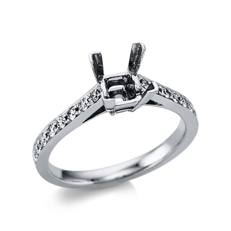 ring 18 kt WG, 16 diamonds 0,25 ct, G-si, mounting for 1x princess 6 mm, width:53