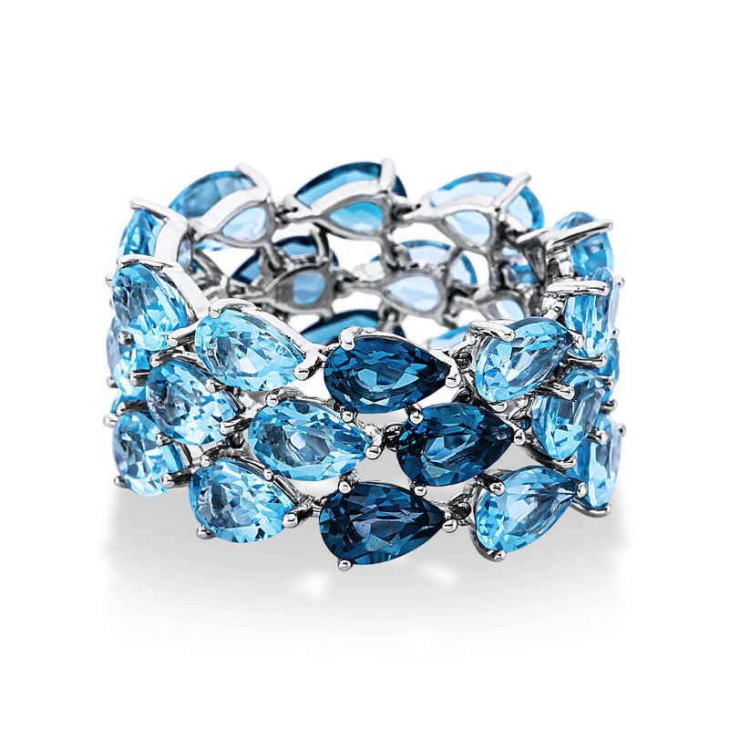 ring 18 kt WG, 6 blue topaz 2,60 ct Lond. blue, 24 blue topaz 11,00 ct Swiss blue, width:54