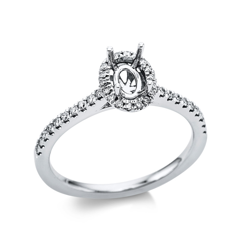ring 18 kt WG, 38 diamonds 0,23 ct, G-si, mounting for 1x oval 0,50 ct, width:54