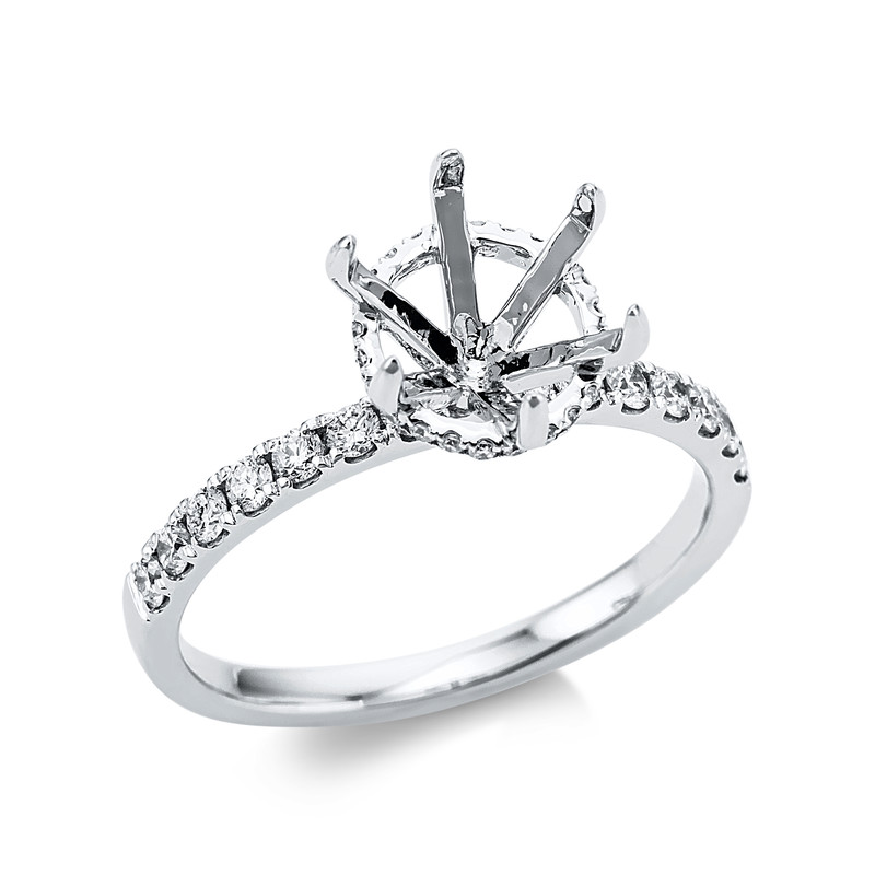 ring 18 kt WG, 38 diamonds 0,39 ct, G-si, mounting for 1x diamond 2,40 ct, width:54