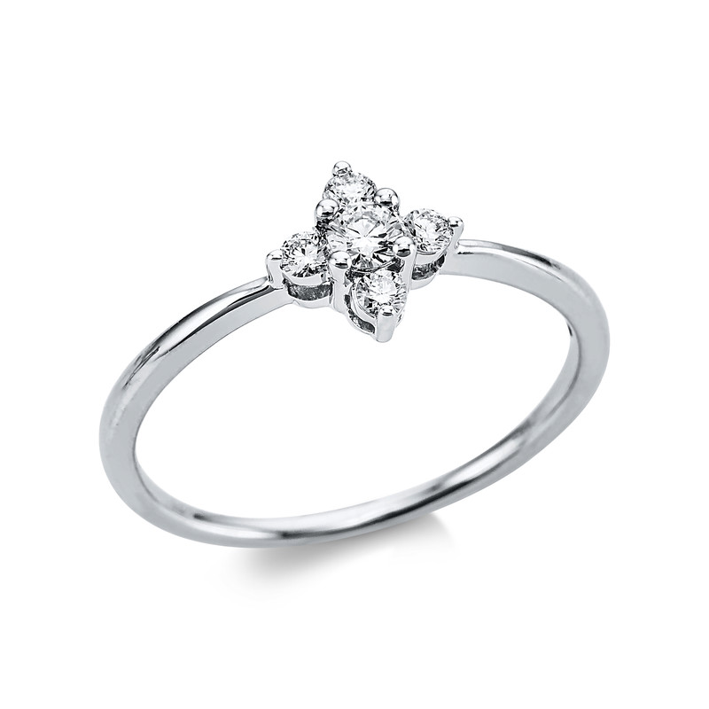 ring 18 kt WG, 1 diamond 0,09 ct, G-si, 4 diamonds 0,11 ct, G-si, width:54