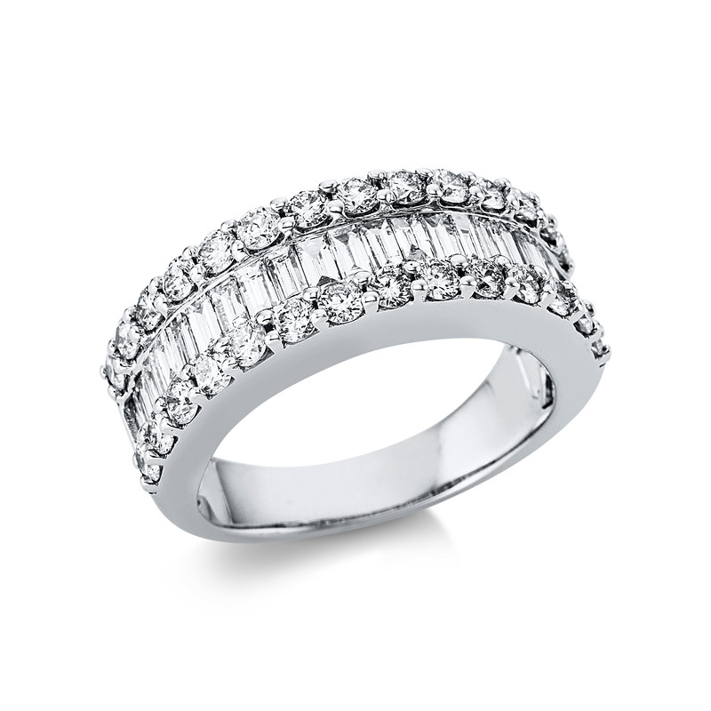 ring 18 kt WG, 21 baguette 0,91 ct, G-si, 28 diamonds 1,13 ct, G-si, width:54