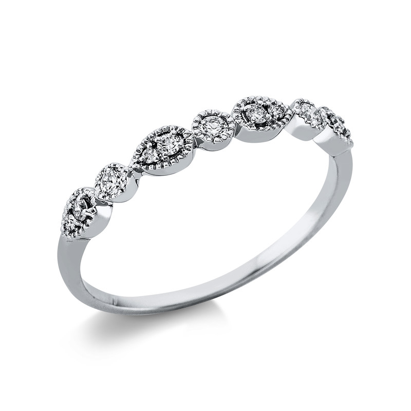 ring 18 kt WG, 11 diamonds 0,14 ct, G-si, width:54