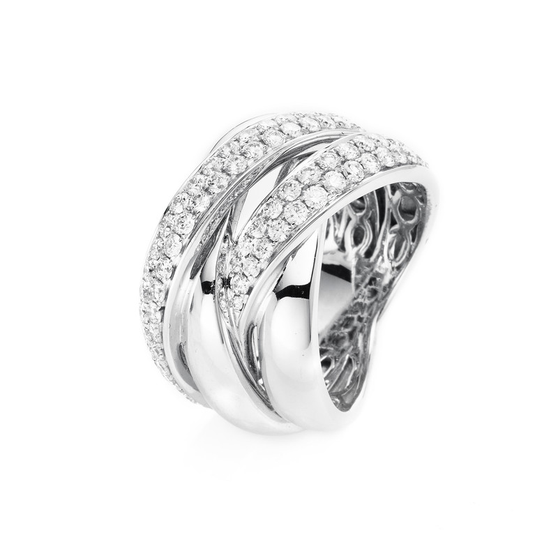 ring 18 kt WG, 77 diamonds 1,40 ct, G-vsi, w:14,6 mm, width:55
